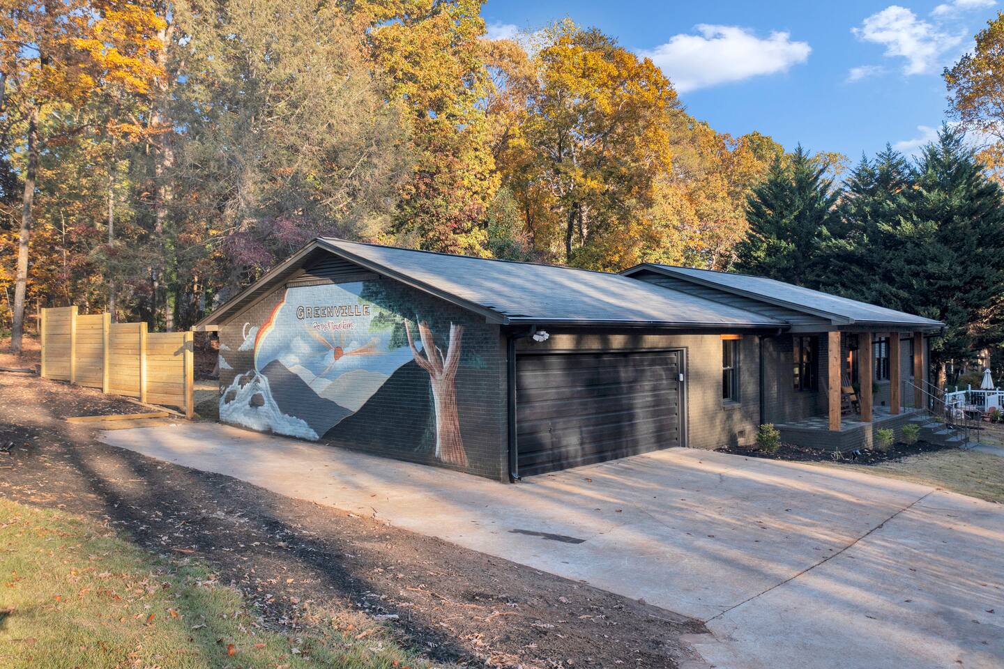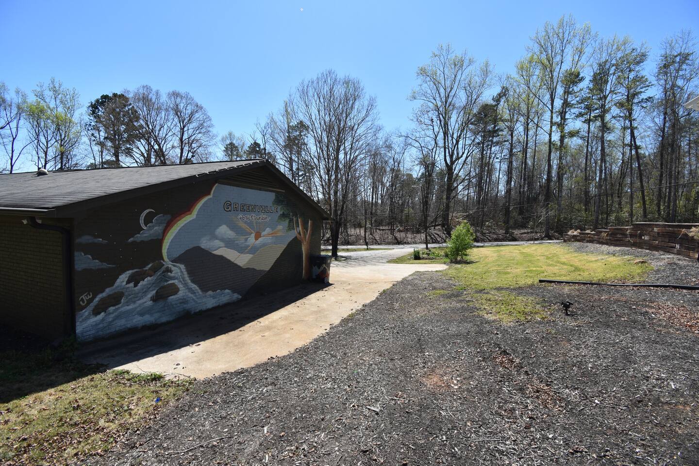 Walk to Paris Mtn. State Park Waterfall. 3 Bedrooms with Comfy 12" mattresses, one story home with an open floorpan. Firepit, corn hole, and ping pong for your enjoyment! Close to downtown Greenville, Downtown TR, Downtown Greer *Strong Wifi *Two living rooms with TVs *Ping Pong Corn Hole Fire Pit Gas Grill *Fully equipped kitchen